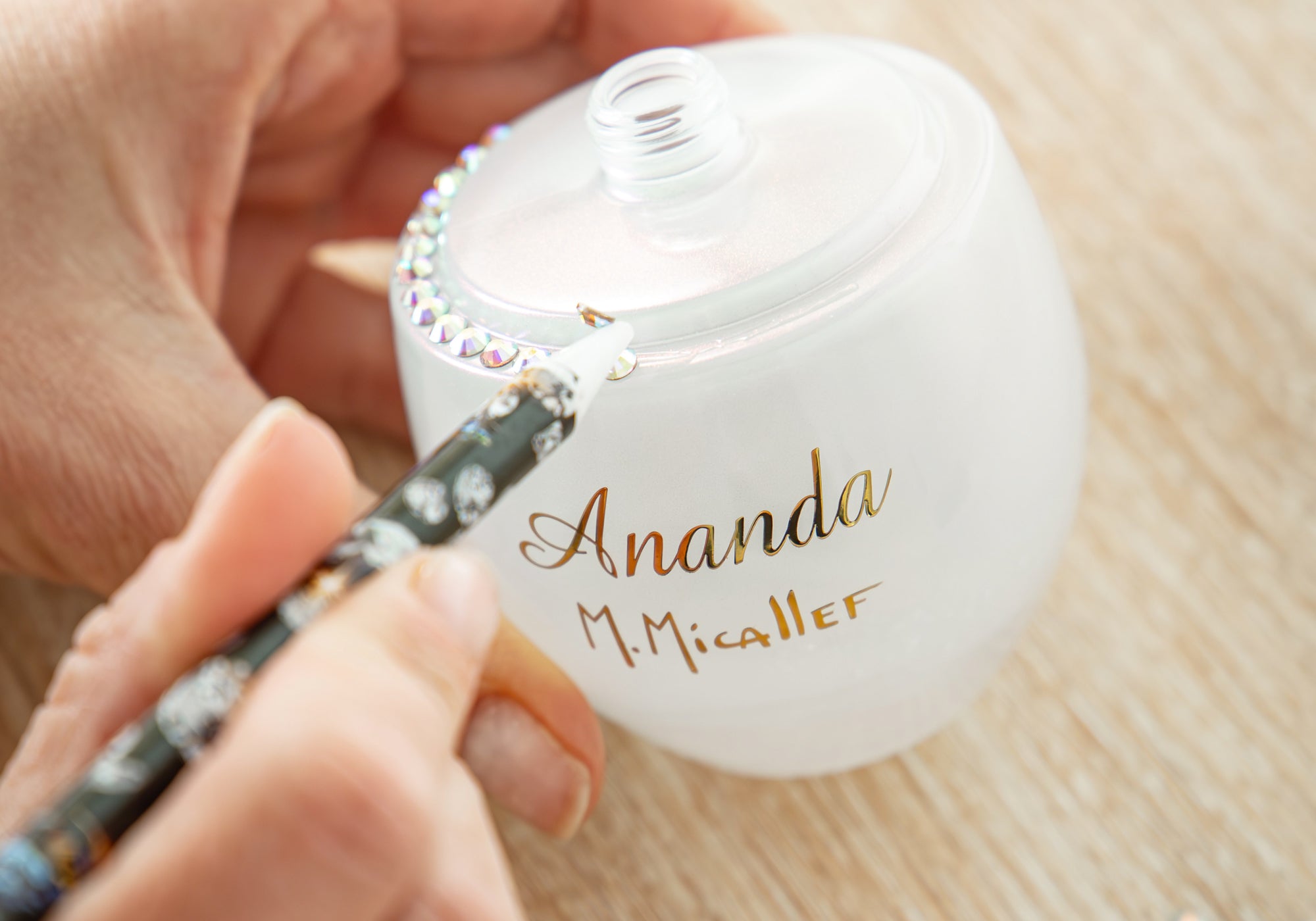 In his Grasse workshops, M.Micallef perpetuates the skills of artistic artisans: manual application of crystals, decoration with gold and platinum, firing of bottles in his own ceramic kiln... Every detail counts, each creation is designed as an olfactory and visual work. M.Micallef juices, true compositions of high perfumery, can contain up to 200 natural ingredients, rigorously selected to offer unparalleled hold and emotion.