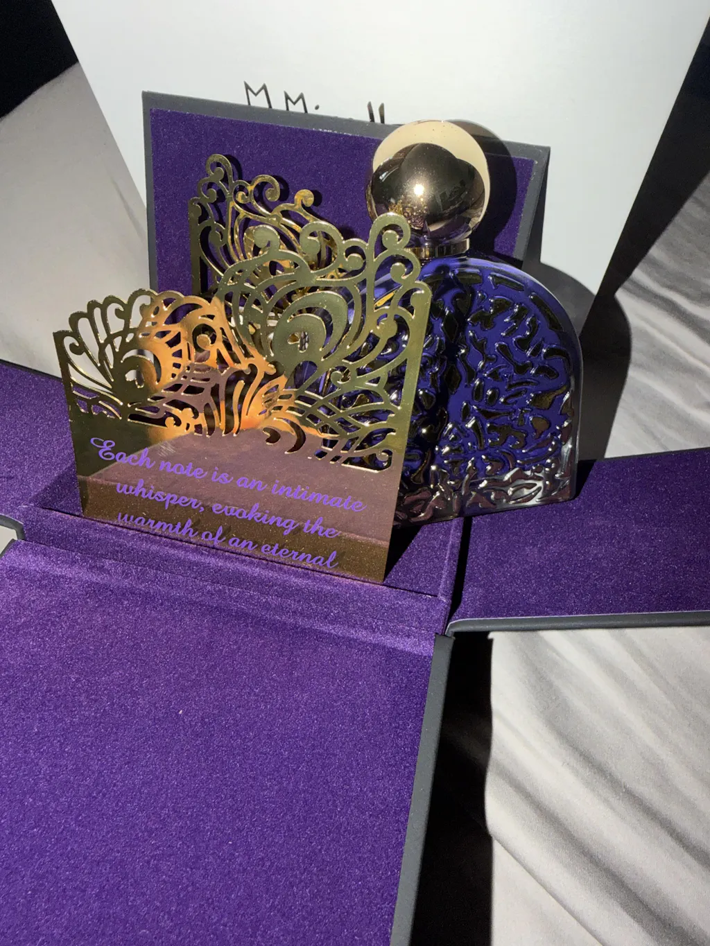 Présenté dans un flacon bijou violet profond rehaussé d’or, Purple Love reflète le savoir-faire artisanal et l’univers joaillier de la Maison M.Micallef. Proposé en édition limitée, ce parfum s’impose comme un véritable objet de collection.